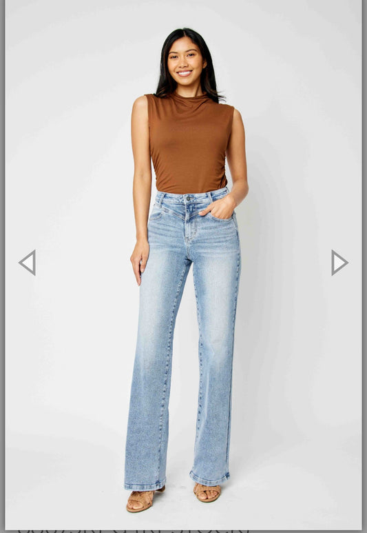 Dusk blue acid wash, bow detail high waist denim skirt